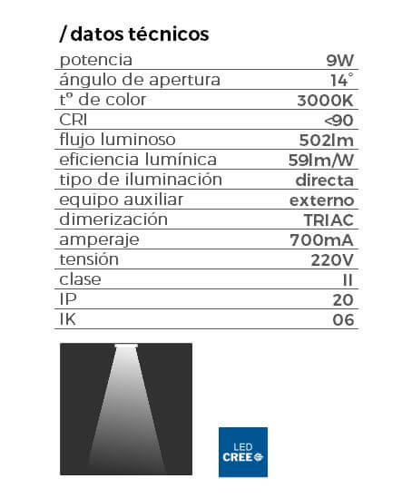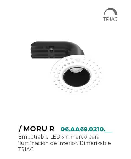 Empotrables LED de iluminación de interior, sin marco para una mayor integración con el cielo raso. Fuente de luz recedida con bafle antideslumbrante negro mate para un buen nivel de confort visual. Dimerizables.