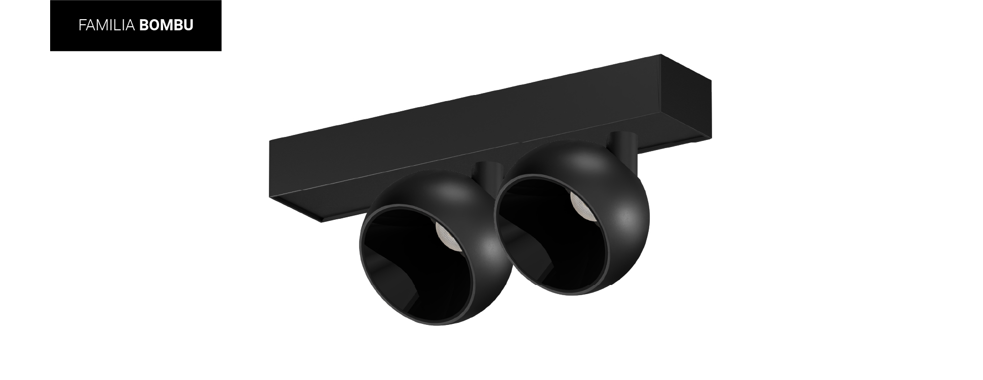 Bombu es una familia de luminarias de interior que combina formas puras y orgánicas ideales para realizar ambientes residenciales, comerciales y hoteleros. Se destaca por brindar un excelente control del deslumbramiento gracias a su fuente de luz profundamente recedida que genera, a primera vista, la sensación de estar apagada. Disponible en dos temperaturas de color: 2700K y 3000K, con dos ángulos: 35° y 50° y dos acabados: blanco y negro.